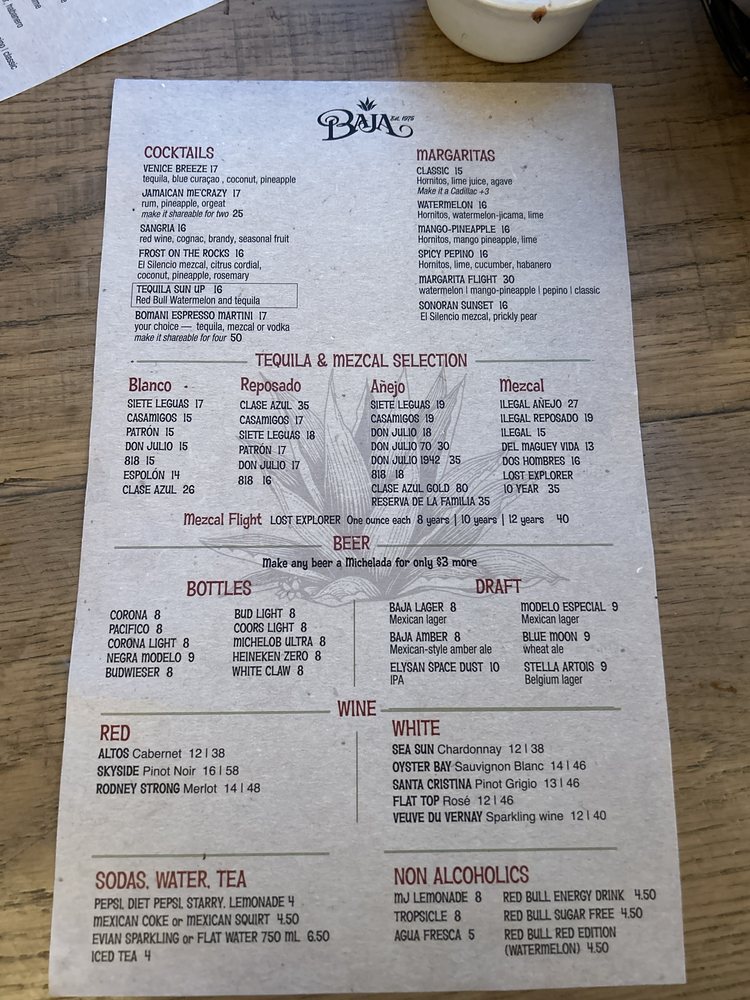 Baja Cantina at 311 Washington Blvd, Marina Del Rey, offers a vibrant Latinx-owned dining experience with a wide array of menu options. From pescatarian and vegan dishes to classic favorites like birria tacos and chicken enchiladas, there is something for everyone. The casual atmosphere is perfect for a family dinner or a date night on the outdoor patio with sand floors, providing a Cancun-like vibe. Customers praise the fresh guacamole, flavorful chips and salsa, and delicious fish tacos. The happy hour specials are a hit, offering great value for tasty bites like taquitos and nachos, paired with refreshing margaritas. With attentive staff, cozy ambiance, and ample outdoor seating, Baja Cantina is a must-visit spot for authentic Mexican cuisine in Marina Del Rey.